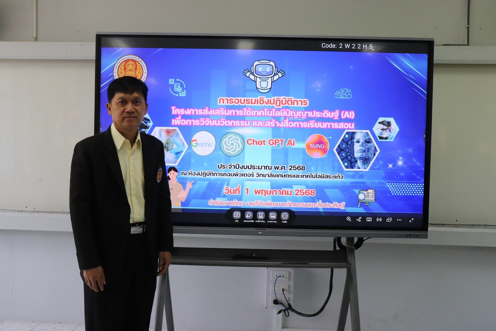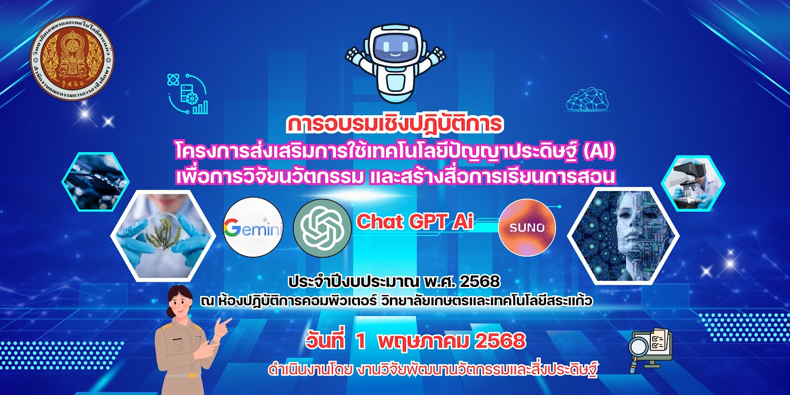 เข้าร่วมการอบรมเชิงปฏิบัติการโครงการส่งเสริมการใช้เทคโนโลยีปัญญาประดิษฐ์ (AI) ณ วิทยาลัยเกษตรและเทคโนโลยีสระแก้ว