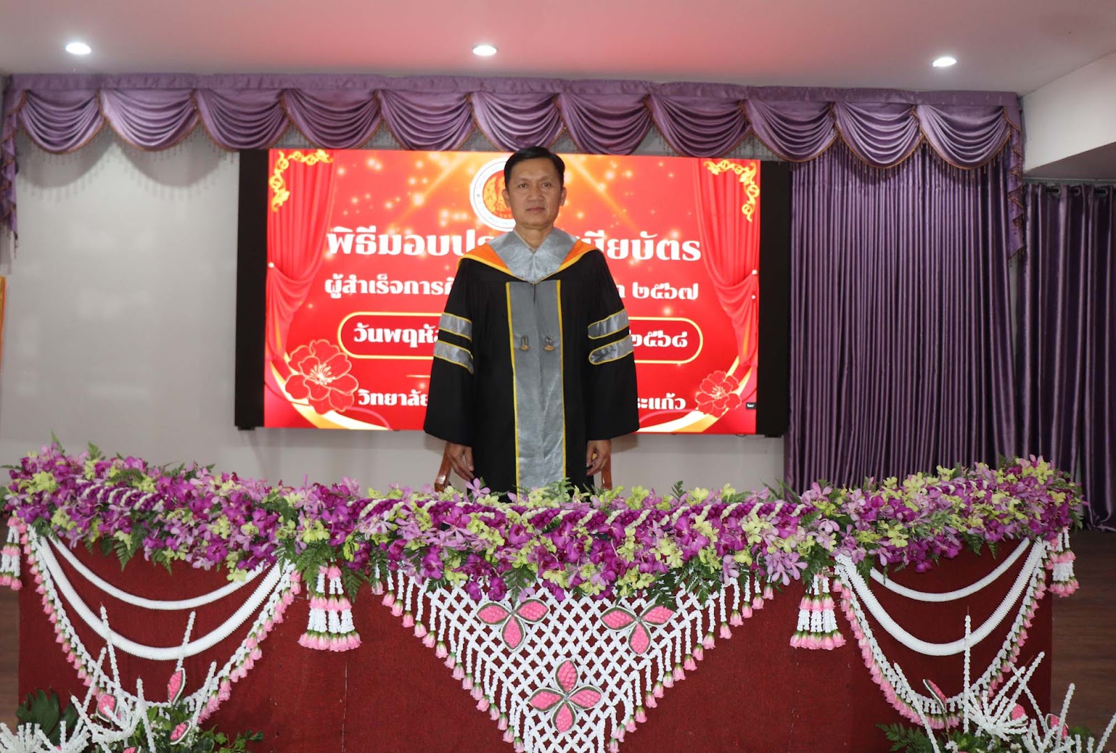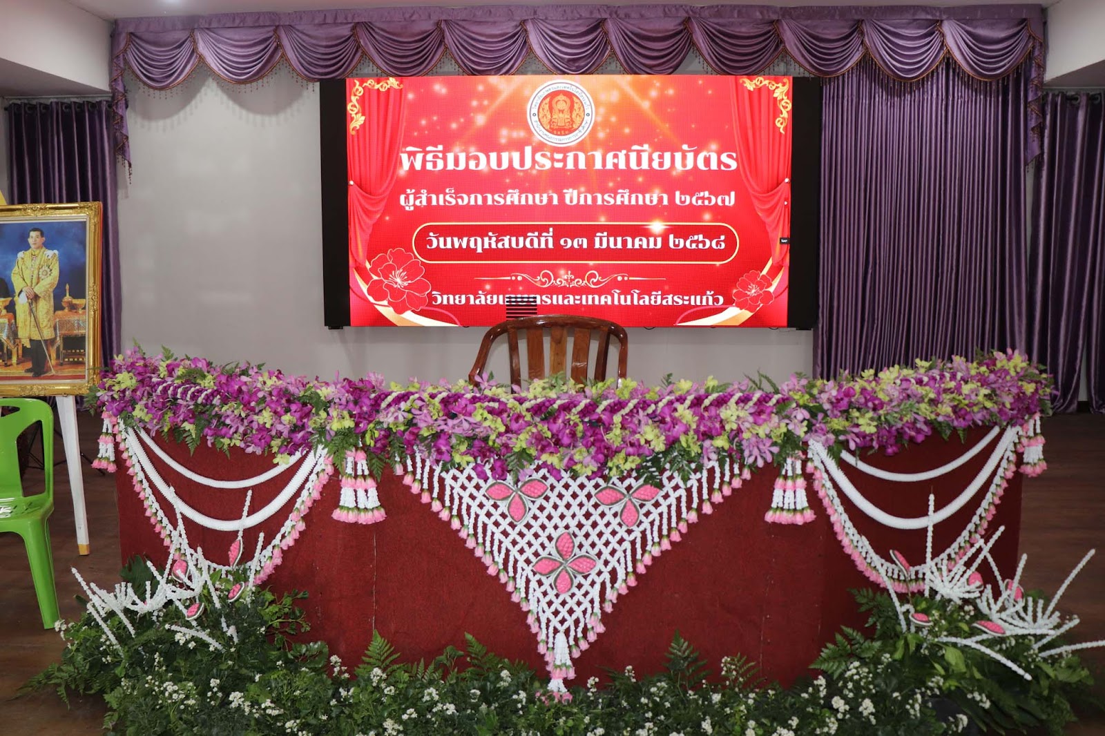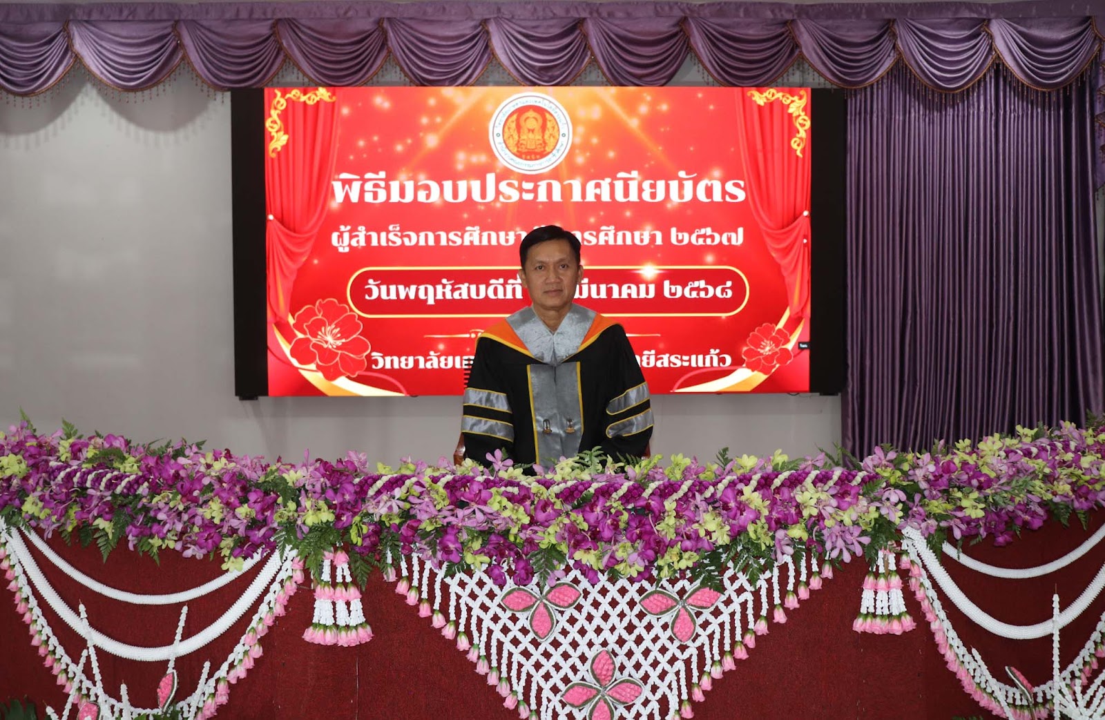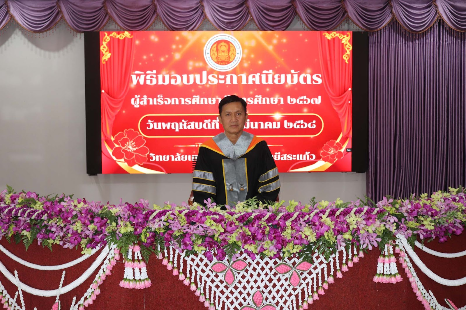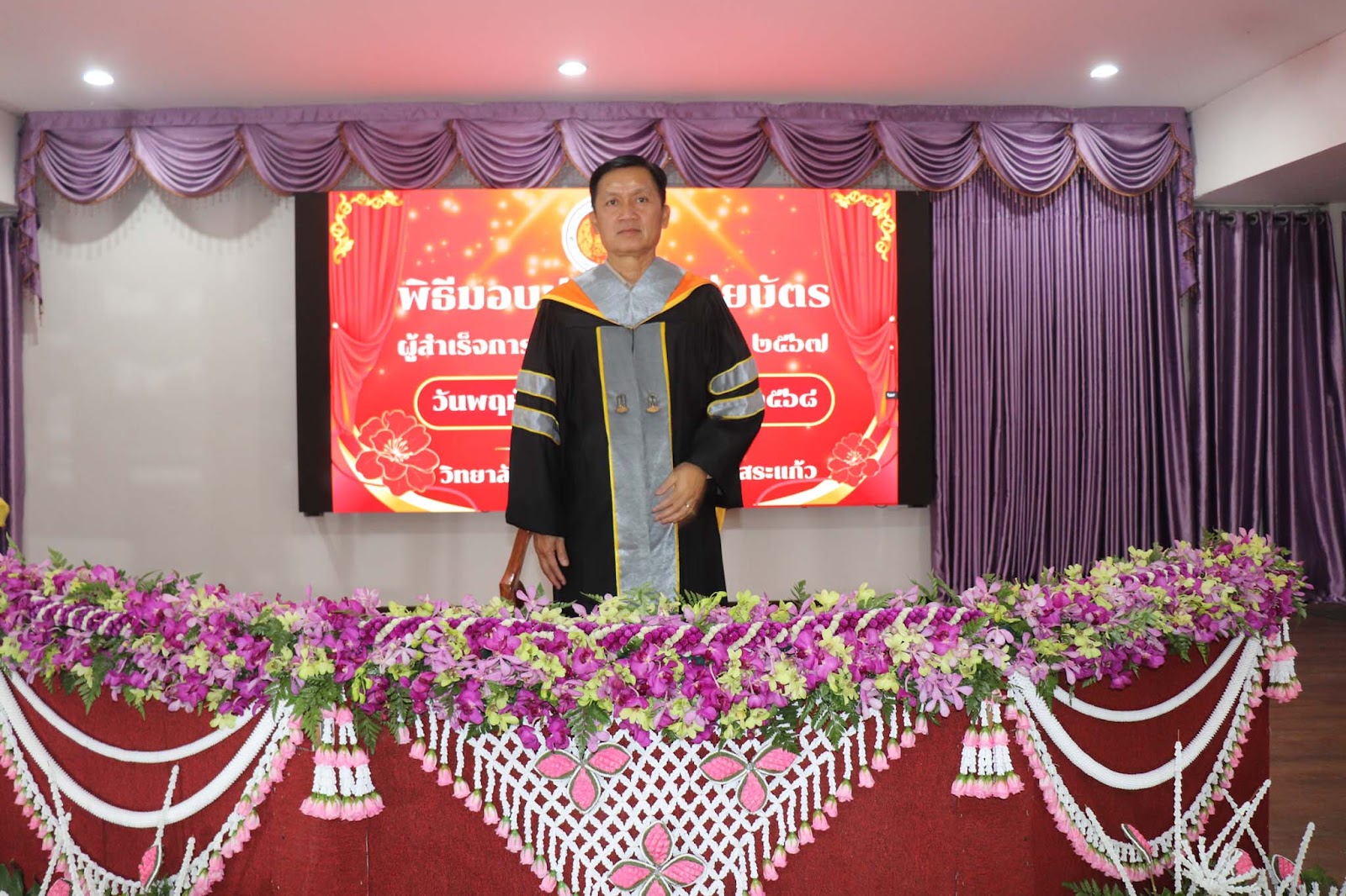 พิธีมอบใบประกาศนียบัตรผู้สำเร็จการศึกษา ประจำปีการศึกษา ๒๕๖๗ ณ หอประชุมแสงสุริยะ วิทยาลัยเกษตรและเทคโนโลยีสระแก้ว