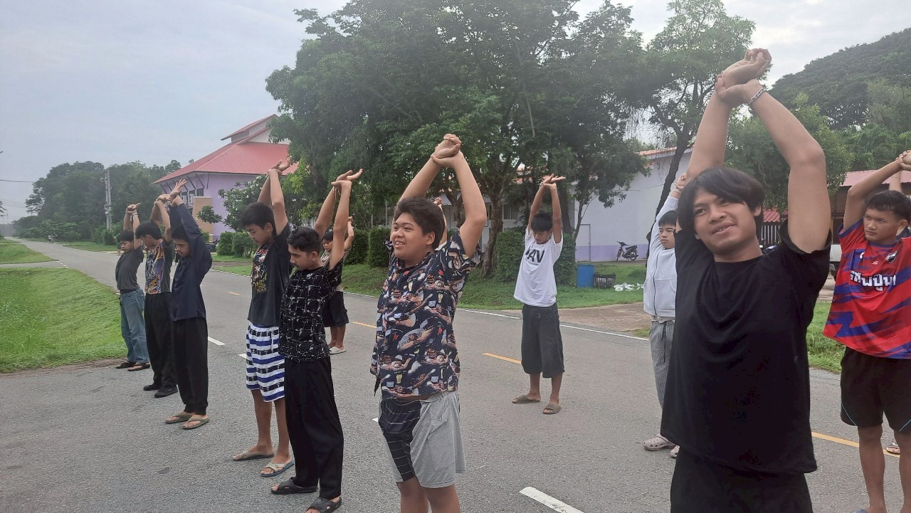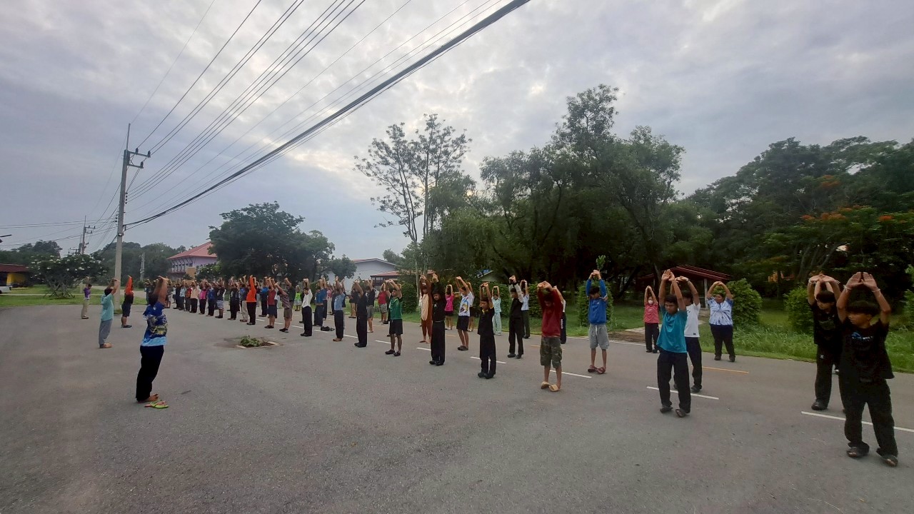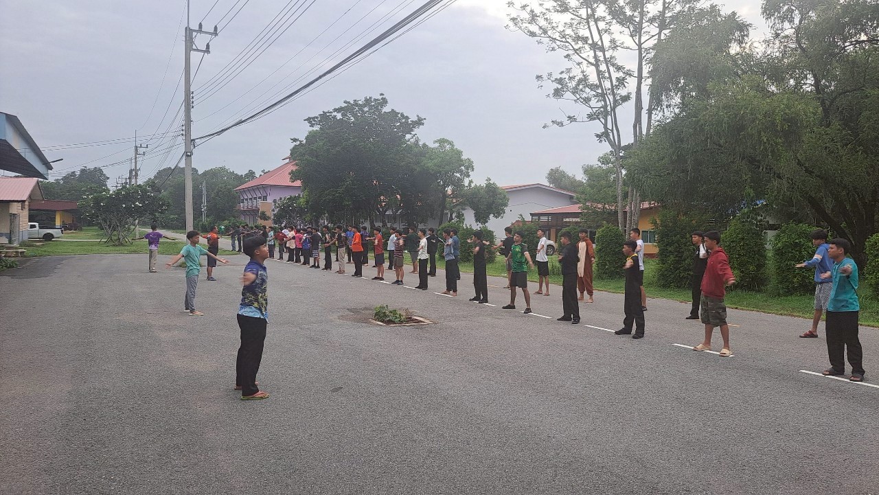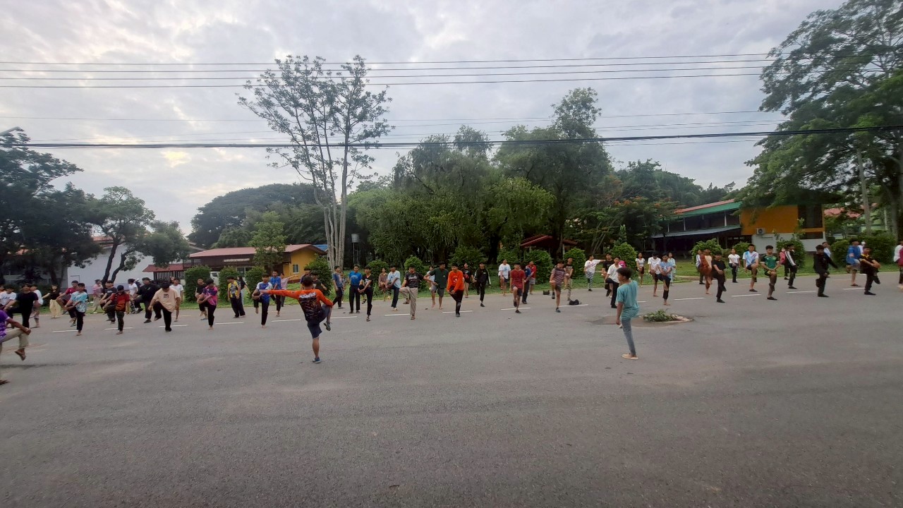 กิจกรรมออกกำลังกายยามเช้า ณ หอพักนักศึกษาวิทยาลัยเกษตรและเทคโนโลยีสระแก้ว