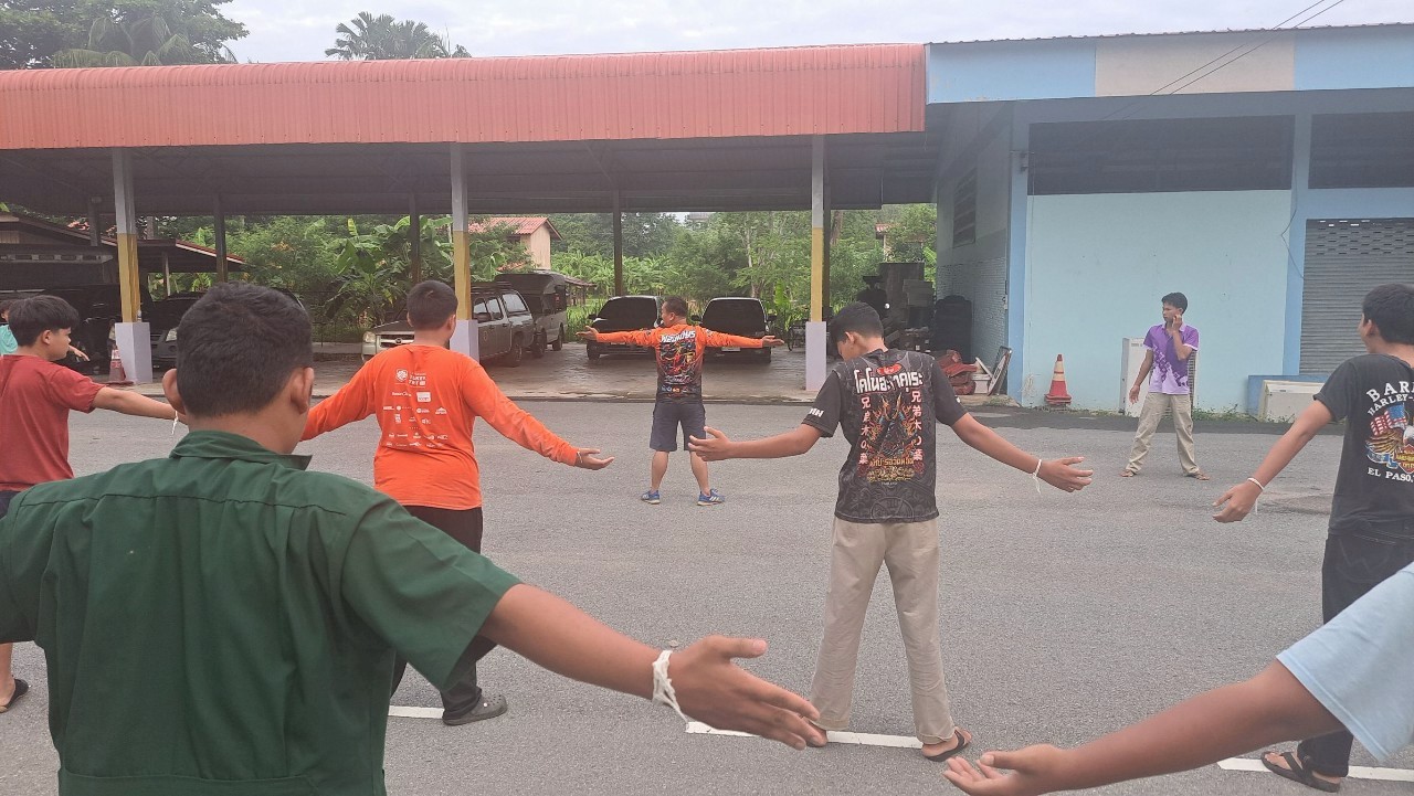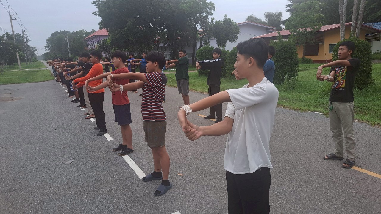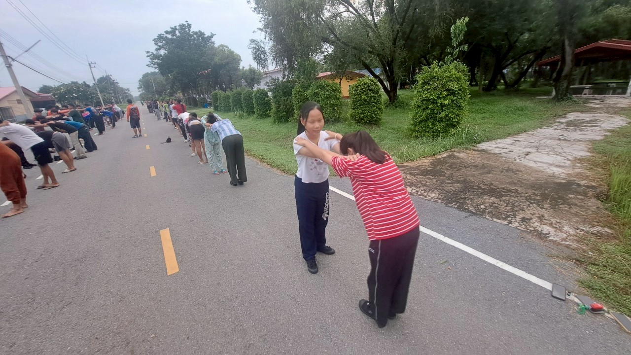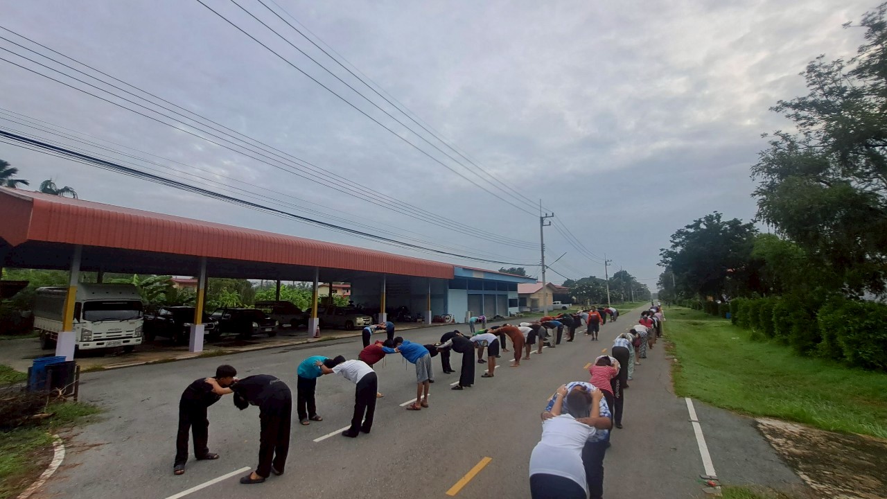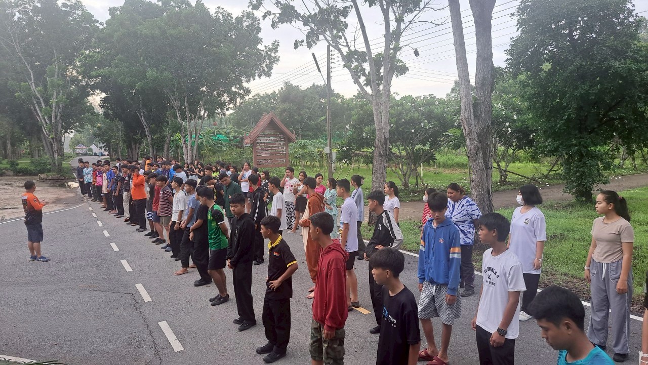 กิจกรรมออกกำลังกายยามเช้า ณ หอพักนักศึกษาวิทยาลัยเกษตรและเทคโนโลยีสระแก้ว