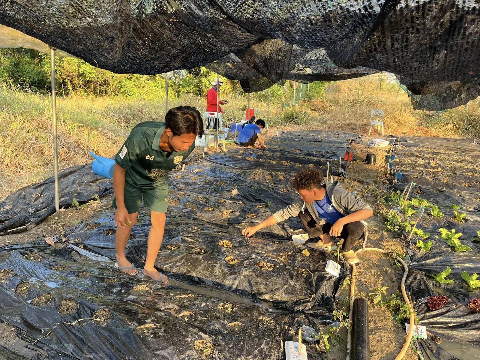 งานฟาร์มผักไฮโดโพรนิกส์ แผนกวิชาพืชศาสตร์ วิทยาลัยเกษตรและเทคโนโลยีสระแก้ว มีการปลูกผักไร้ดิน ปลูกผักลงดิน กิจกรรมช่วงเย็นนักเรียน