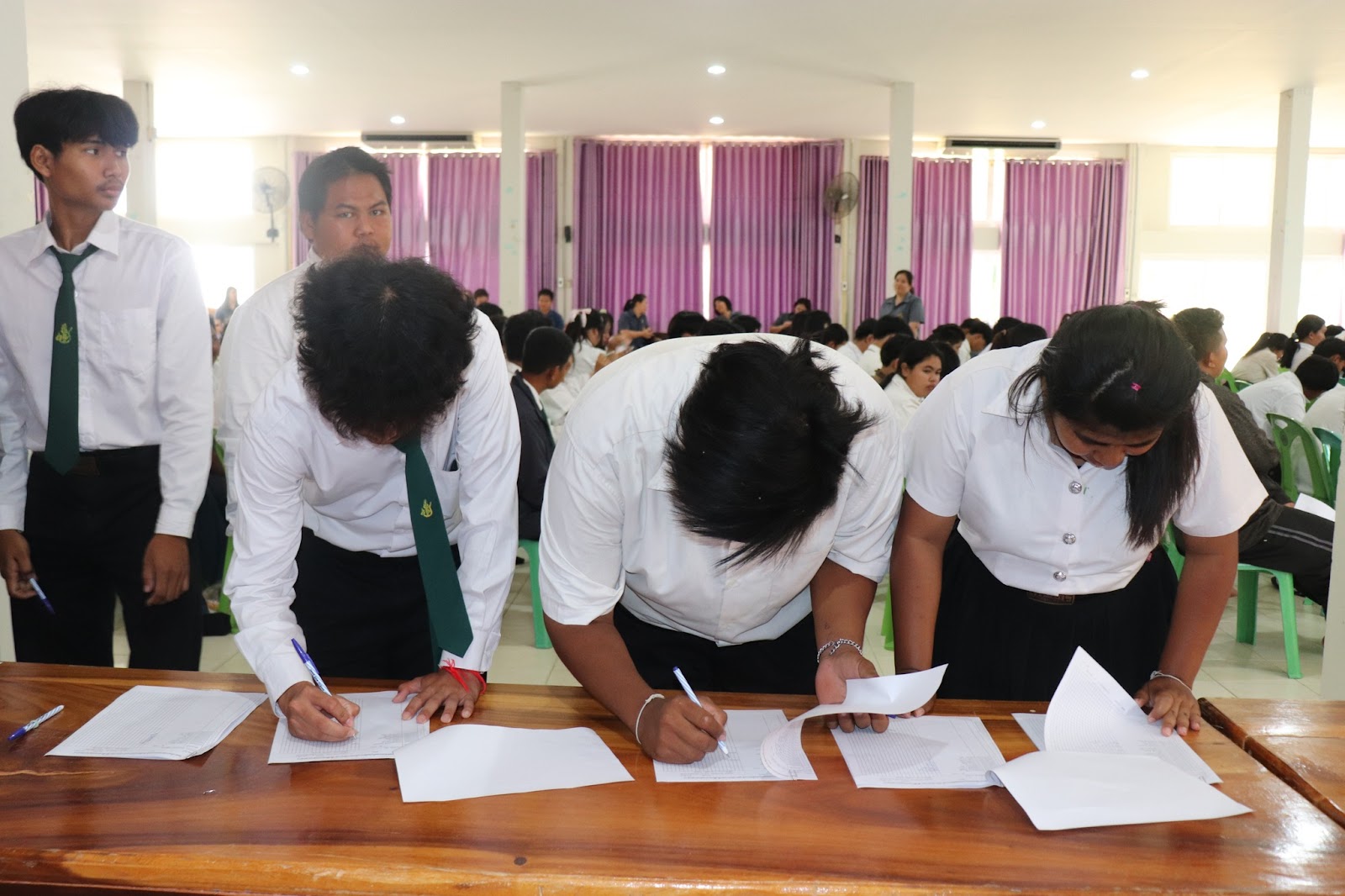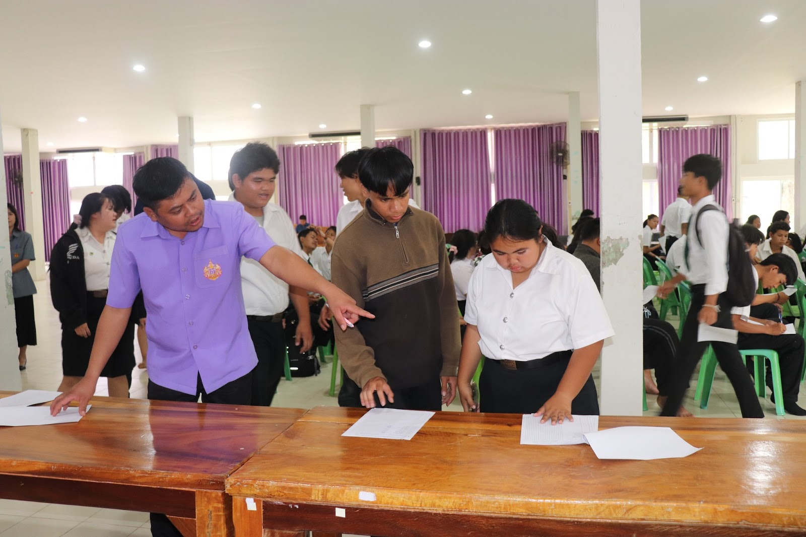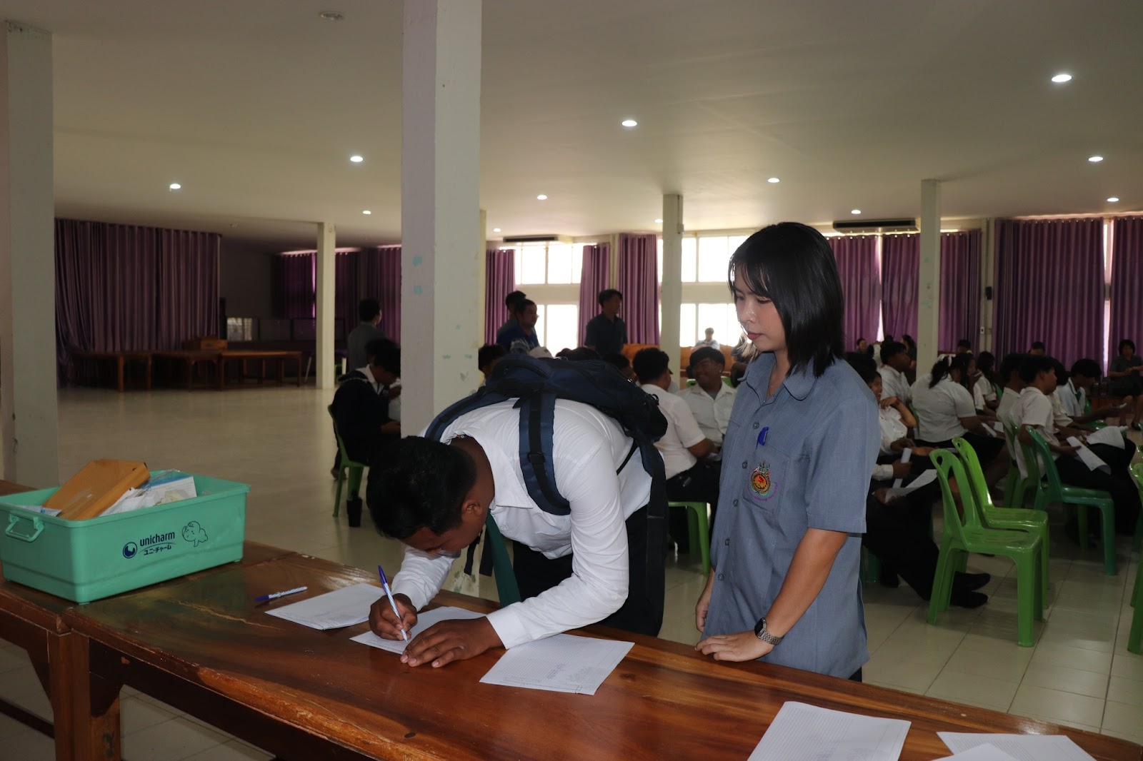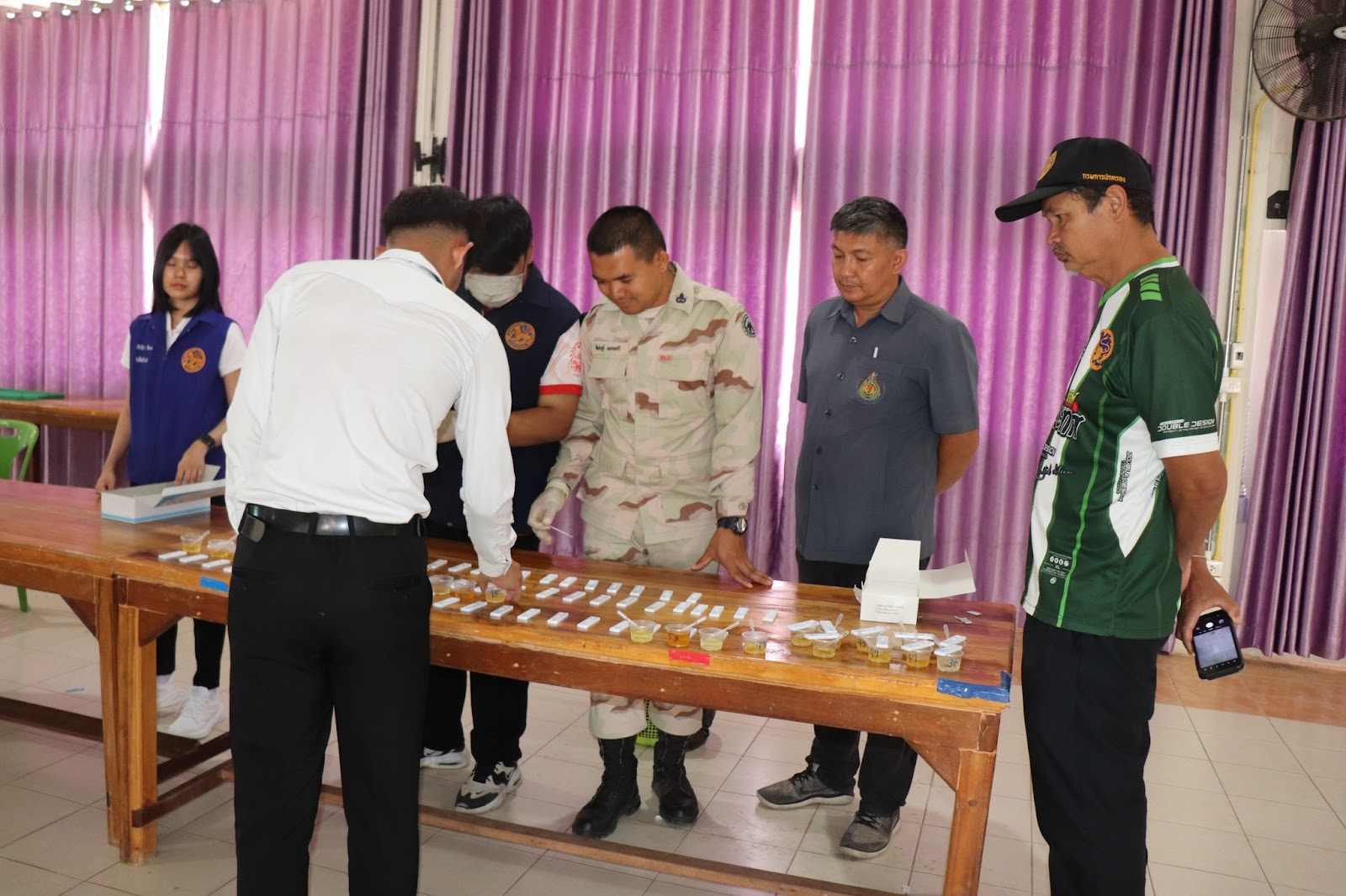 นักเรียน นักศึกษา เข้ารับการตรวจสารเสพติดในปัสสาวะ ภาคเรียนที่ ๒ ปีการศึกษา ๒๕๖๗ โดยศูนย์ปฏิบัติการป้องกันและปราบปรามยาเสพติดอำเภอออรัญประเทศ (ศป.ปส.อ.) ณ หอประชุมแสงสุริยะ วิทยาลัยเกษตรและเทคโนโลยีสระแก้ว