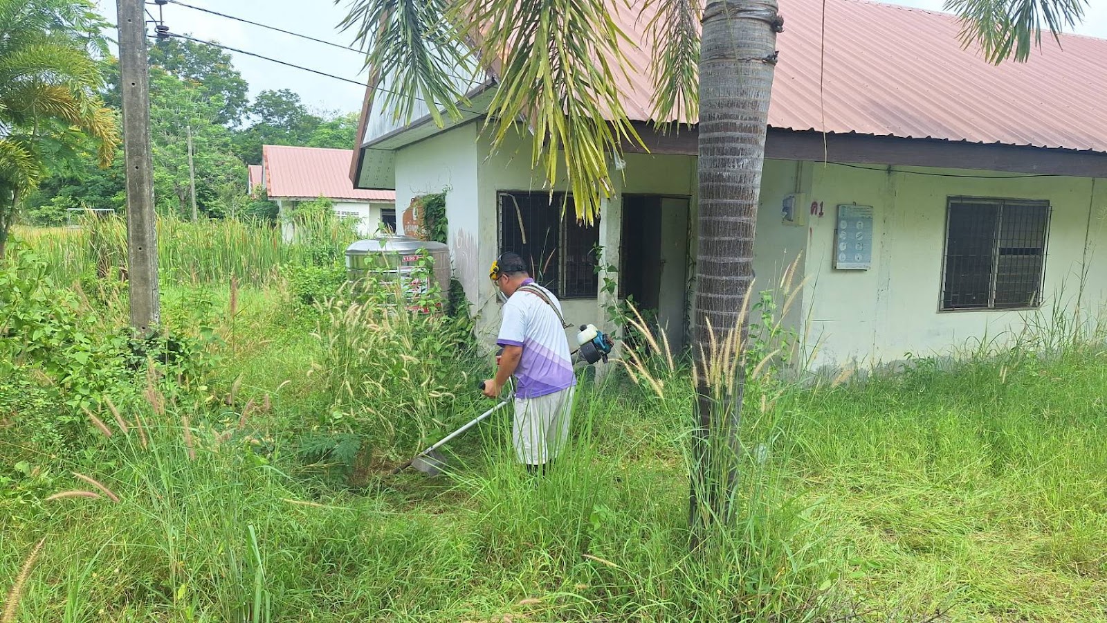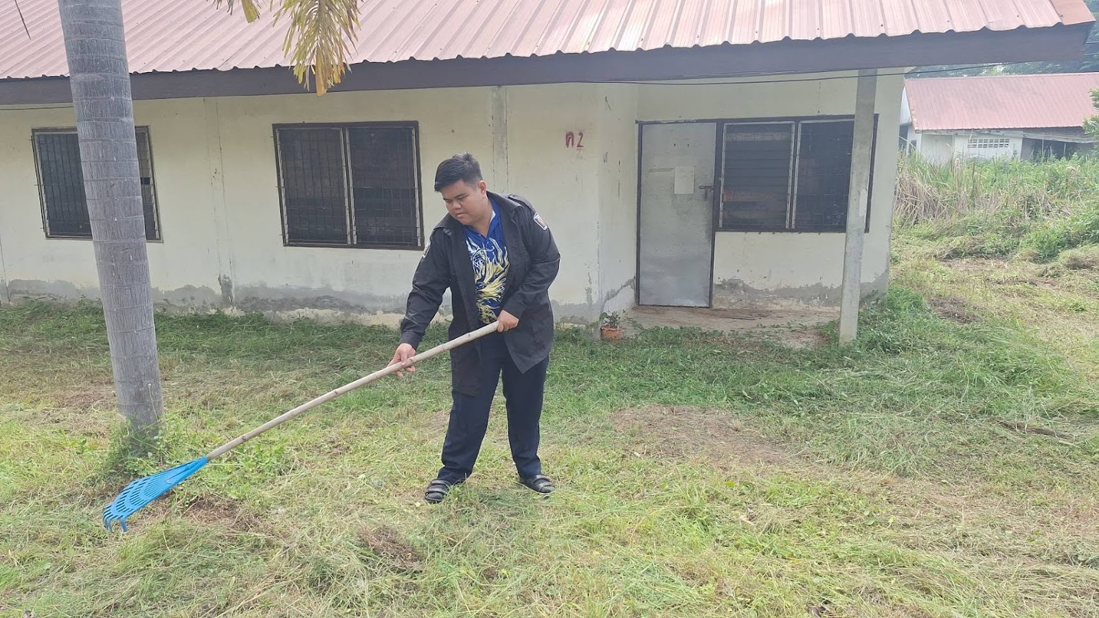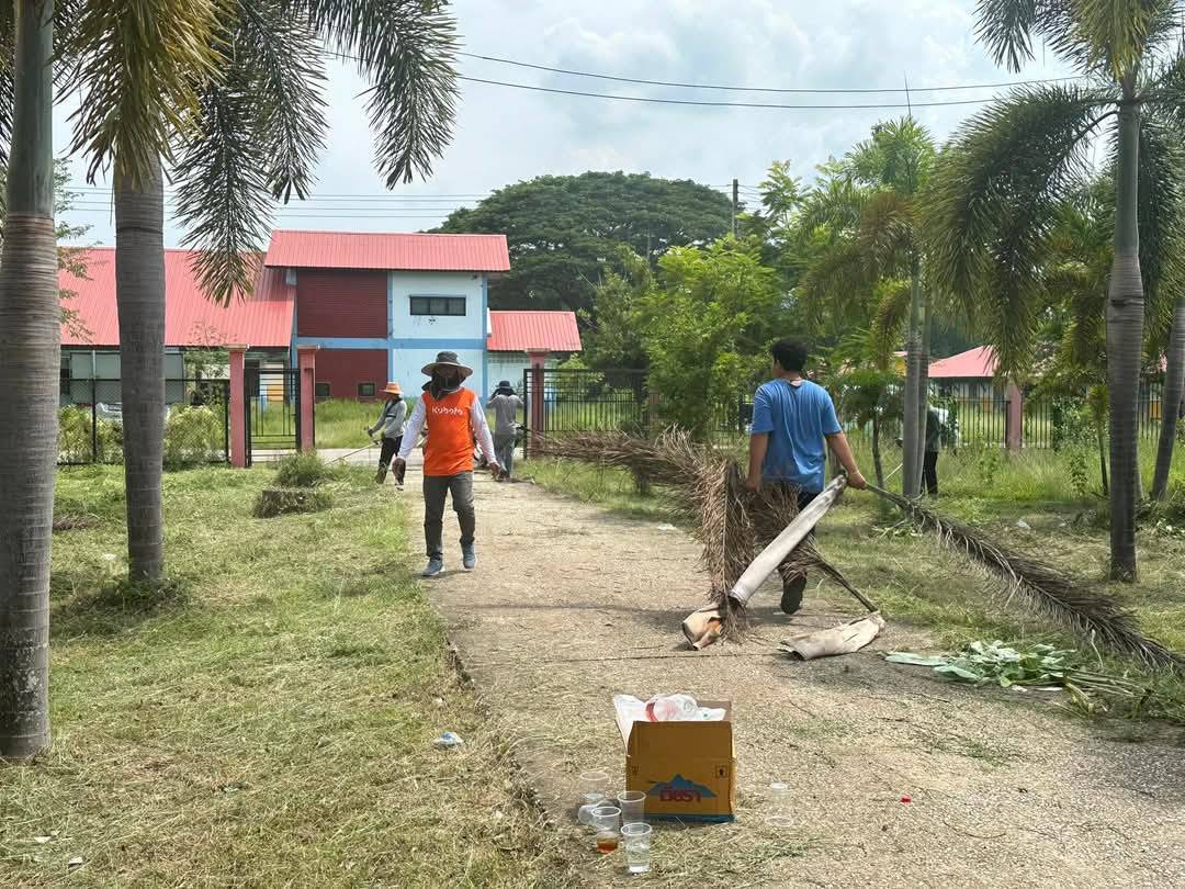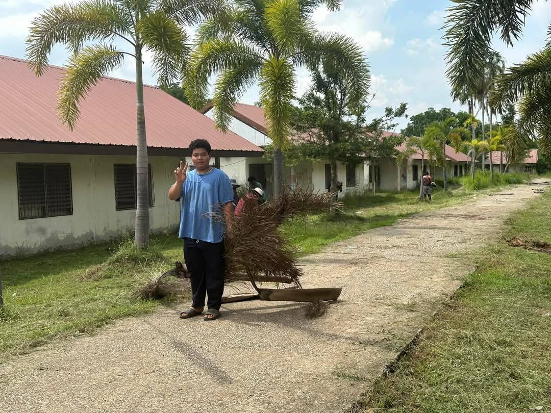 งานสวัสดิการฯตัดหญ้าทำความสะอาดหอพักด้านใน และด้านหน้า ณ วิทยาลัยเกษตรและเทคโนโลยีสระแก้ว