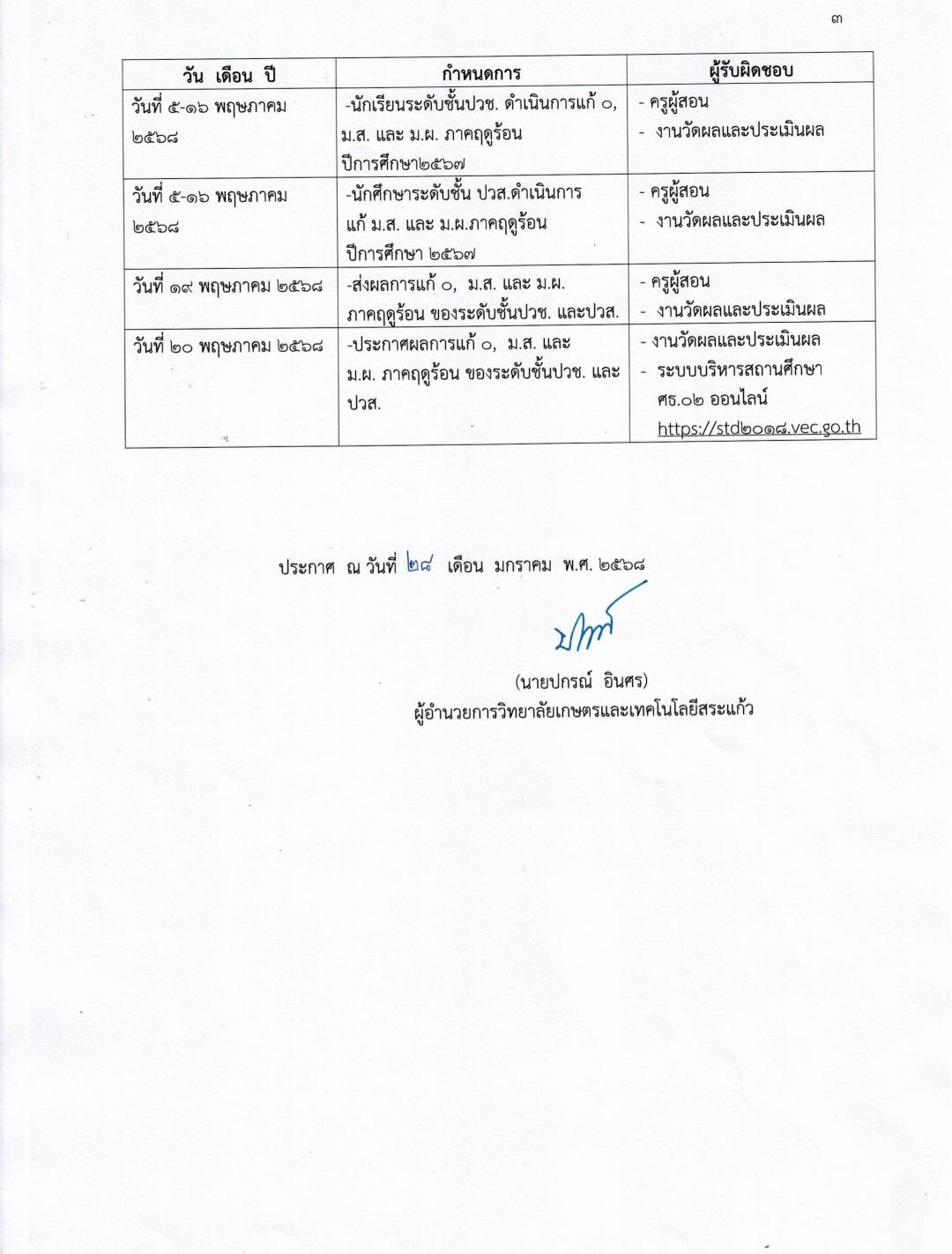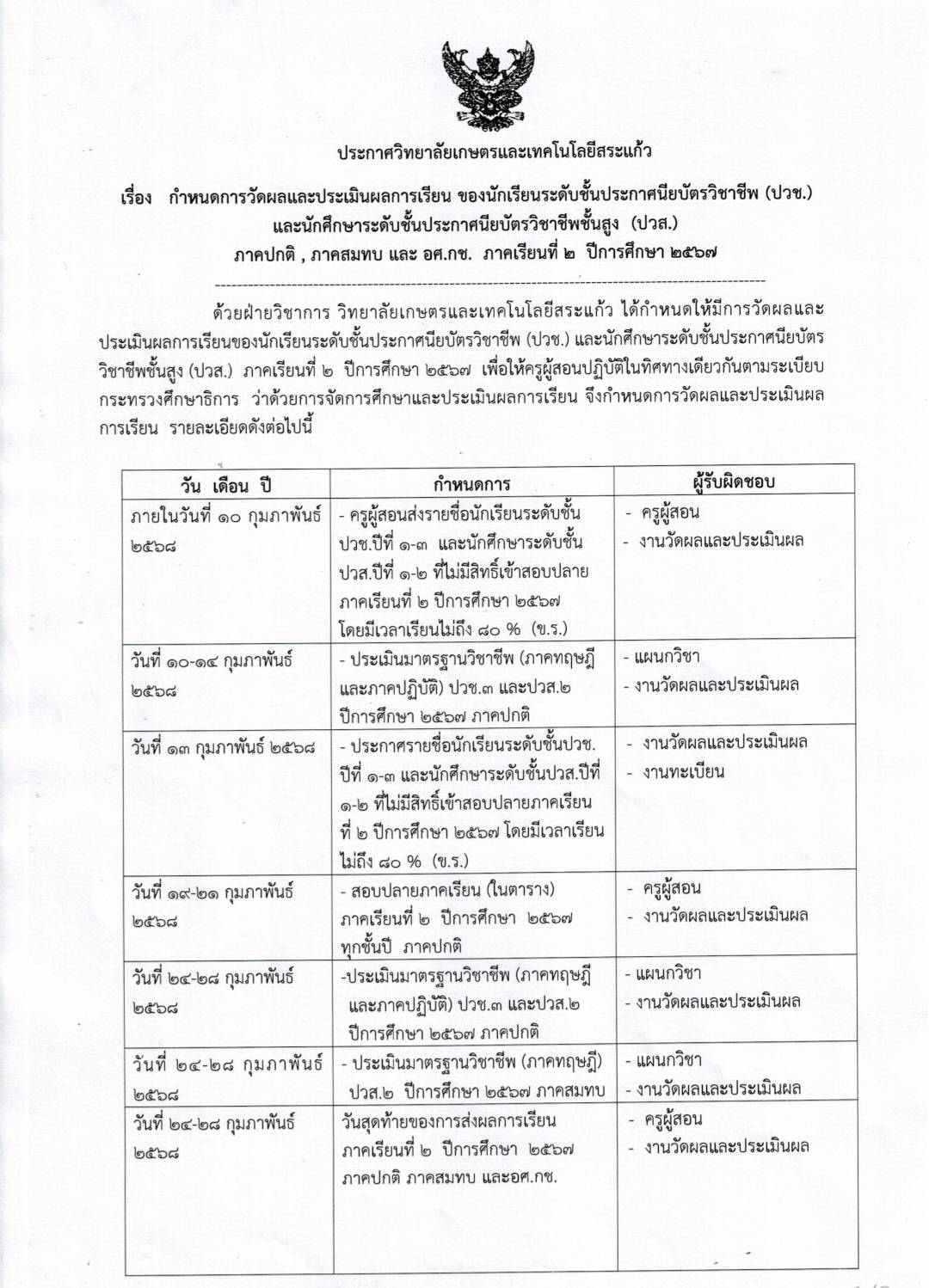 กำหนดการวัดผลและประเมินผลการเรียน ภาคเรียนที่ ๒ ปีการศึกษา ๒๔๖๗