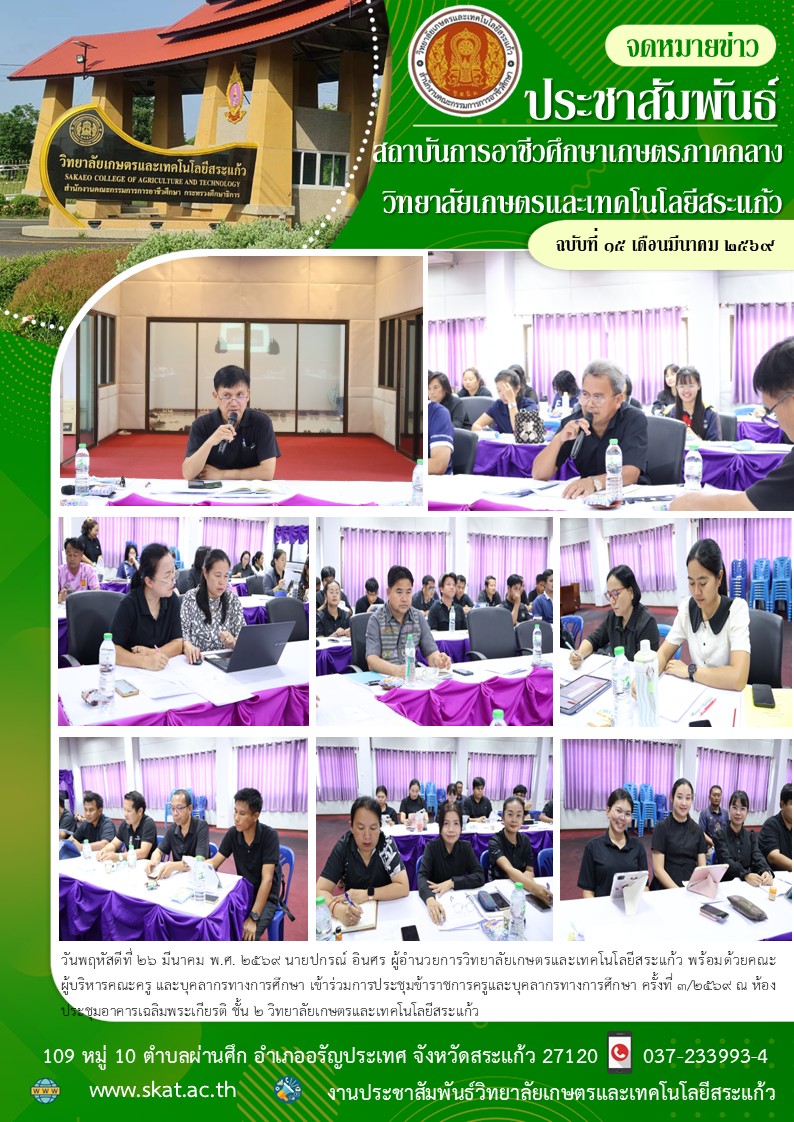 จดหมายข่าวประชาสัมพันธ์ ฉบับที่ ๑๕ เดือนมีนาคม ๒๕๖๙