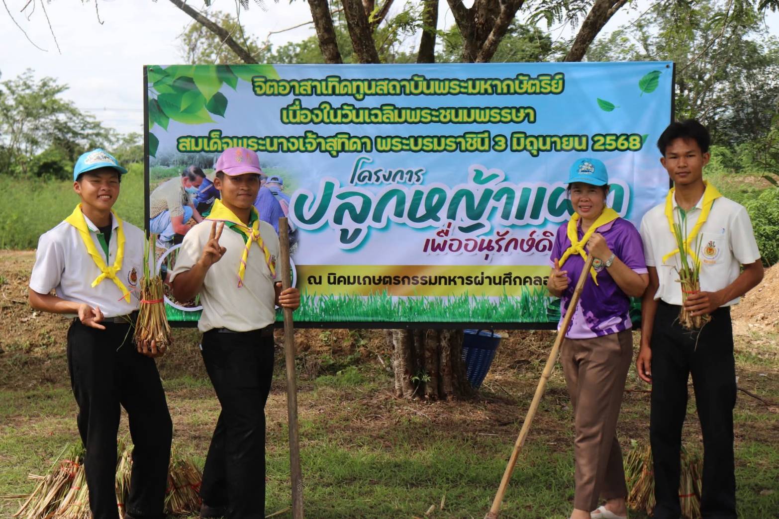 วันพุธที่ ๒๘ พฤษภาคม ๒๕๖๘ นายปกรณ์ อินศร ผู้อำนวยการวิทยาลัยเกษตรและเทคโนโลยีสระแก้ว มอบหมายให้นายวิระ ด้วงแป้น รองผู้อำนวยการวิทยาลัย พร้อมด้วยนายชาคร วินากรณ์ หัวหน้างานกิจกรรมนักเรียน นักศึกษา และนายอดิศร ศรีจันทร์ ครูผู้ช่วย นำนักเรียน นักศึกษา เข้าร่วมกิจกรรมจิตอาสาเทิดทูนสถาบันพระมหากษัตริย์ เนื่องในวัน คล้ายวันเฉลิมพระชนมพรรษา สมเด็จพระนางเจ้าสุทิดา พัชรสุธาพิมลลักษณ พระบรมราชินี วันที่ ๓ มิถุนายน ๒๕๖๘ โครงการปลูกหญ้าแฝกเพื่ออนุรักษ์ดินและน้ำ โดยมีนายชรินทร์ ภู่ชัย นายอำเภออรัญประเทศ ประธานในพิธี ณ นิคมเกษตรกรรมทหารผ่านศึกคลองน้ำใส ตำบลผ่านศึก อำเภออรัญประเทศ จังหวัดสระแก้ว