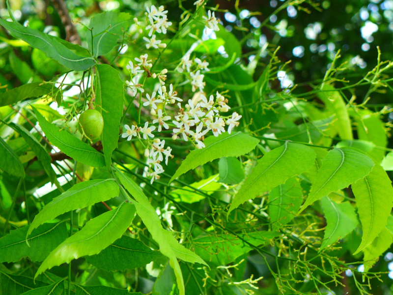 ลักษณะเด่นของพืช :: สะเดาเป็นไม้ต้นขนาดกลางถึงใหญ่ สูงได้ถึง 25 เมตร มีเรือนยอดกลมหนาทึบ แตกกิ่งก้านมาก รากหยั่งลึก ชอบแดดจัด โตเร็ว ทนแล้งและทนดินได้หลายชนิด (ยกเว้นดินเค็ม/น้ำขัง) ลักษณะเด่นคือใบประกอบแบบขนนก ใบย่อยรูปหอก ขอบใบหยัก ดอกเล็กสีขาวมีกลิ่นหอม ออกเป็นช่อพร้อมใบอ่อนช่วงปลายปี ผลกลมรี สุกสีเหลืองอมเขียว มีรสขมทุกส่วน