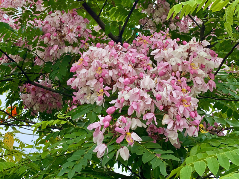 ลักษณะเด่นของพืช :: ไม้ต้นขนาดเล็กถึงขนาดกลาง ผลัดใบ สูง 5-15 ม. ใบประกอบแบบขนนกปลายคู่ เรียงสลับ มีใบย่อย 5-8 คู่ เรียงจากเล็กไปหาใหญ่ ช่อดอกแบบช่อกระจะ ออกตามกิ่งพร้อมใบอ่อน กลีบดอกสีชมพูแล้วเปลี่ยนเป็นสีขาวในเวลาต่อมา เกสรเพศผู้ 10 อัน ยาวไม่เท่ากัน ฝักเป็นแท่งกลมยาว มีขนนุ่มสีเทาหนาแน่น มี 30-40 เมล็ด เมล็ดค่อนข้างกลม สีน้ำตาลเป็นมัน รูปไข่ รูปรี ถึงรูปขอบขนาน