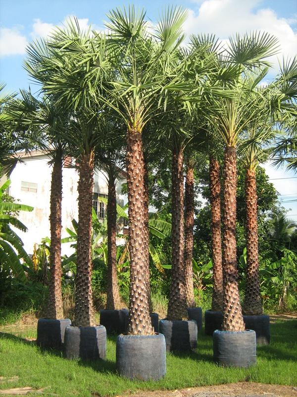 ลำต้น: เส้นผ่านศูนย์กลาง 10 – 40 เซนติเมตร ใบรูปพัด ขอบใบจักเว้าลึกเกือบถึงสะดือ แผ่นใบกลม ขนาด 1 เมตร หนาและแข็ง ผิวใบทั้งสองด้านมีนวลมาก สีขาวเด่นชัด ก้านใบยาว 1 เมตร ขอบใบมีหนาม ช่อดอกสมบูรณ์เพศ ออกระหว่างกาบใบ ยาว 2 เมตร กลม ขนาด 1.5 เซนติเมตร เมื่อสุกสีดำ